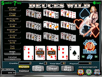 of-a-kind, Wild Royal w/2’s, and 4 deuces.