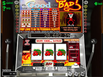 Good to Be Bad is a 3-reel, system-wide Progressive Slot machine,