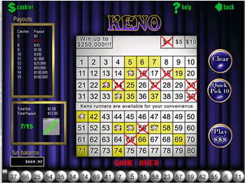 the Keno Card. The wager amounts are $1, $5 and $10 and stay