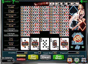 of-a-kind, Wild Royal w/2’s, and 4 deuces.